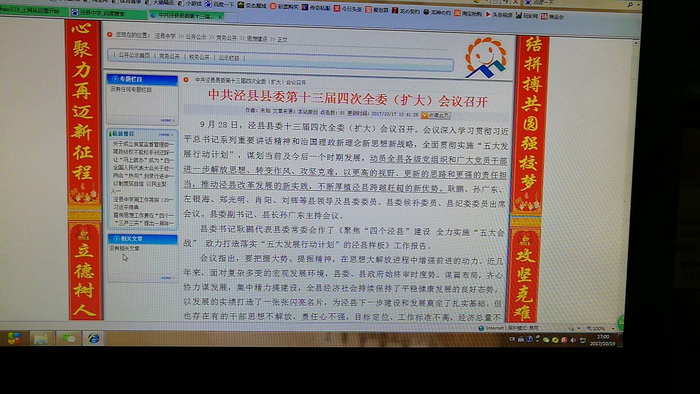 十三届四次全委(扩大)会议,是县委审时度势、谋篇布局,“走出去”认真调查研究的产物,为全县上下统一了思想、坚定了信心、明确了目标、凝聚了共识。188金宝博唯一官网_wap.sports918.com自会议召开后就积极谋划,充分准备。一是印发学习资料。学校将全委会工作报告印发给每位党委班子成员、各处室和各党支部,并将相关内容上传至校园网党务公开栏目,通过短信、微信等方式告知全体教职工结合自身工作实际认真开展自学和思考。二是营造学习氛围。学校充分利用校园内的党务公开栏、宣传橱窗和电子屏幕宣传全委会工作报告精神实质,营造浓厚的宣传贯彻气氛,使全体教职工从思想上把握大势、提振精神。三是发挥示范作用。学校要求党委班子成员和各党支部高度重视、精心组织,学习在前、行动在前;要求全体党员同志通过自己学、集中学、做笔记、谈体会等形式领会全委会讲话精神,并结合“两学一做”学习教育和基层党组织标准化建设切实发挥引领和示范作用。
