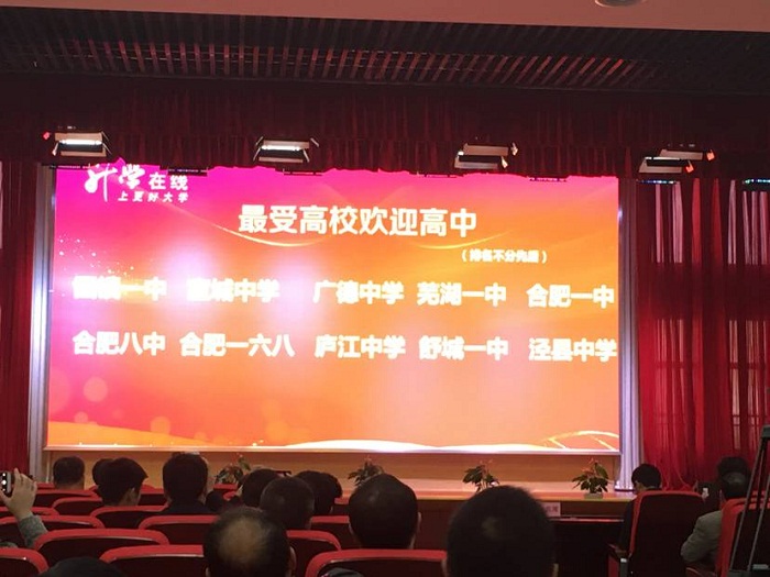 议程最为牵动人心的环节是“最受高校欢迎高中”揭晓仪式,经严格筛选统计,泾县中学荣膺殊荣。