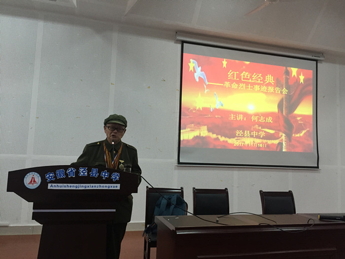 为创建文明校园,缅怀革命先烈,提高未成年人思想道德修养,11月16日下午,全国关心下一代优秀工作者、全国离退休干部先进个人、安徽省第二届道德模范、芜湖市关工委宣讲团成员何志诚同志再一次来188金宝博唯一官网_wap.sports918.com宣讲革命烈士事迹,高一年级250余名师生聆听了报告会。