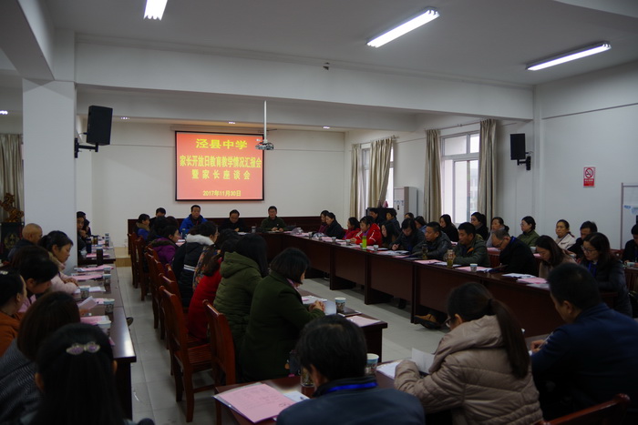 上午八时整,家长代表们齐聚综合南楼302会议室,与188金宝博唯一官网_wap.sports918.com领导、教师一起交流探讨了学校发展、学生管理等共同关心的话题,会议在平等、务实、友好的氛围中举行。座谈会上,县人大常委会副主任,校党委书记、校长王永生首先对家长们在百忙之中抽出时间来参加188金宝博唯一官网_wap.sports918.com家长开放日活动表示感谢。为进一步办好人民满意的省级示范高中,实现“全市前列、皖南一流、江南名校”的奋斗目标,王校长强调,188金宝博唯一官网_wap.sports918.com将进一步抓立德树人,实现“教书育人、管理育人、服务育人、环境育人、活动育人和文化育人”;进一步强化管理,深化改革,实行“扁平化”管理,降低管理重心,提高管理效率;进一步狠抓集体备课和课堂教学,提升教师教育教学水平和高考升学率。泾县中学承载着广大家长与莘莘学子的大学梦想,王校长表示188金宝博唯一官网_wap.sports918.com将上下一心、团结拼搏、扎实苦干,努力提升教育教学质量和高考升学率,也真诚地希望广大家长建言献策,多提有利于学校持续发展的宝贵意见和建议。