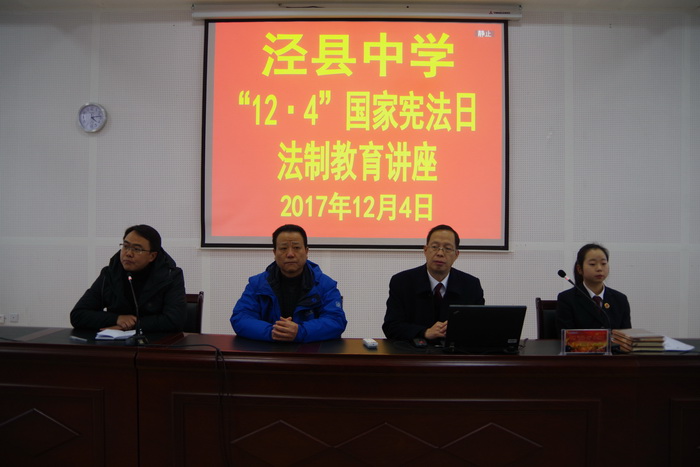 12月4日是第四个国家宪法日暨全国法制宣传日。为了深入开展国家宪法日暨全国法制宣传日的宣传教育活动,让法制走进校园,进一步增强同学们的法制观念,接受法制教育,自觉遵纪守法,做一个知法、守法的合格高中生,12月4日下午,188金宝博唯一官网_wap.sports918.com邀请县检察院工作人员来校举行了以“弘扬宪法精神 构建法制校园”为主题的法制教育讲座。县检察院沈检察官担任主讲,高一、高二年级部分班级学生参加讲座。讲座由政教处主任方利军主持,县检察院副检察长吴震雷、188金宝博唯一官网_wap.sports918.com副校长佘超俊参加活动。