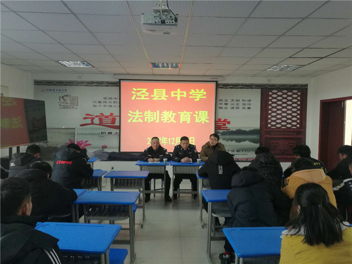 讲座主讲人泾川派出所高警官在法制教育课中以发生在我县的一起违反《治安管理处罚条例》的案件作为导语,向在场学生全面、系统、细致地介绍了《治安管理处罚条例》中wap.sports918.com殴打他人、故意伤害、携带管制刀具等违法行为的法律界定、行为人责任认定以及所要接受的相关处罚等方面的法律法规知识;同时,他结合青少年违法犯罪的起因以及所带来的负面影响向在场同学提出了严格自律、自重自爱、知法守法、冷静理智处理矛盾纠纷等具体要求。整个法制教育课内容丰富,结合学生实际,引起了在场同学的强烈共鸣,达成了活动预期的目标。