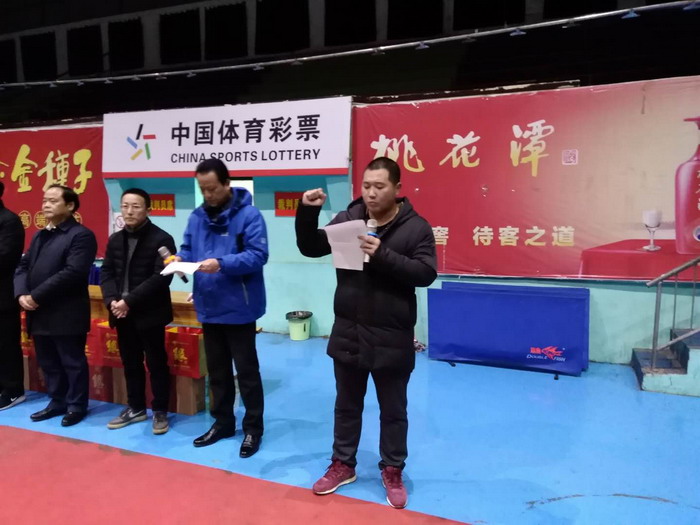 比赛开始前举行了隆重的开幕式,开幕式由188金宝博唯一官网_wap.sports918.com副校长佘超俊主持。县政协副主席、县总工会主席吕青年致欢迎词,他希望本次比赛能够调动广大乒乓球爱好者参与健身运动的极积性,从而达到增强体质、振奋精神、凝聚力量的作用,使全县人民能以昂扬的斗志、饱满的热情和强健的体魄为聚焦“四个泾县”、实施“五大会战”做出更大的贡献!开幕式上,安徽泾县缘酒酒业有限公司总经理吴卫国代表协办单位致词,运动员代表和裁判员代表分别进行了宣誓。