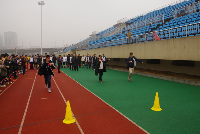 本次趣味运动会分为学生和教师两大组别,分别在上午和下午举行。上午的学生趣味运动会上,有排球垫球、25米往返障碍运球接力、板羽球吊圈、穿越火线接力赛跑等6个单项;下午的教师趣味运动会上,有袋鼠跳、足球射门、定点投篮、加油站等8个单项。整个比赛中,角逐激烈,精彩迭起,活动形式新颖,颇具趣味性,尤其是学生们整齐划一的跑操活动充分展示了莘莘学子们青春的朝气和活力。一张张笑脸写满了新年的喜悦,一个个方队汇成了幸福的海洋,运动员们热情昂扬,积极拼搏,观众的阵阵喝彩声、加油声此起彼伏,荡漾在冬日的校园里,青春的气息洋溢在运动场上。师生们情绪高涨,互相鼓励、互相帮助,发扬了团结协作的精神风貌,将运动会气氛一次次推向高潮。