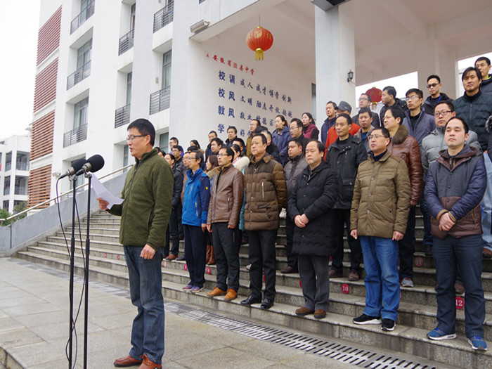 1月22日上午,188金宝博唯一官网_wap.sports918.com全体师生在状元广场隆重集合,举行“升国旗 唱国歌”仪式。教导处主任杨立新作题为“诚信做人,诚信考试”的国旗下讲话。