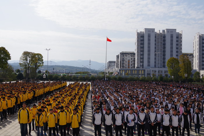 最后,高三(11)班学生代表和高三年级部副主任、教导处副主任王先进分别带领全体高三学生和老师集体宣誓,庄严而嘹亮的誓言声将大会推向高潮。