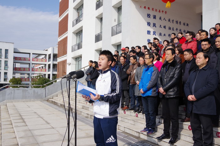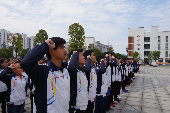 在庄严的升旗仪式后,动员大会正式开始。高三(4)班章沉奥同学和高三教师代表汪银花老师先后作了表态发言,表示将在学校的统一安排下众志成城,风雨同行,奋勇向前,全力备战2018年高考,创造新辉煌。