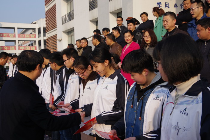 副校长杨银宝主持大会,副校长佘超俊宣读表彰学生名单,学校领导为获得一等奖学金的高三优秀学生代表颁奖,鼓励他们再接再厉,争取取得更大的进步和成绩。