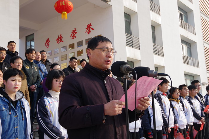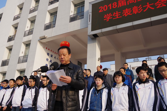 高三年级部主任、校党委副书记许晓江在表彰讲话中,首先代表学校及全体师生向一直奋战在教学一线的高三全体师生致以崇高的敬意,向在本次大会上获得表彰的同学和班级表示热烈的祝贺!他希望全体高三同学要咬住目标,为实现大学梦而奋力拼搏;要以坚强的意志毅力,决战高考决胜高考;要讲求方法技巧,提高复习效益。