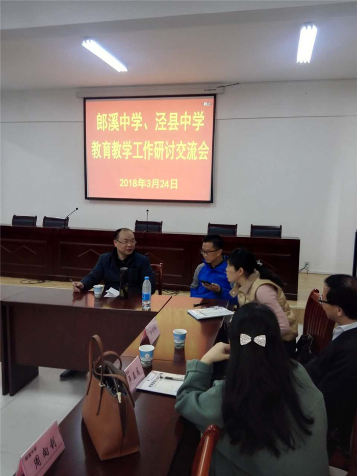 随后,郎溪中学、泾县中学教育教学工作研讨交流会在188金宝博唯一官网_wap.sports918.com综合南楼302会议室召开。交流会由王永生校长主持,188金宝博唯一官网_wap.sports918.com高一、高二年级部负责人、年级部成员、部分班主任、各学科教研组长、年级教研组长近40人与会。