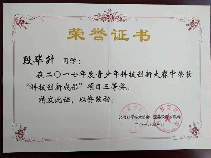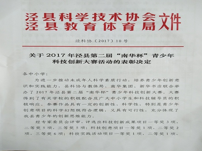为提升青少年的科学素质,培养青少年创新意识和实践能力,形成讲科学、爱科学、学科学、用科学的良好氛围。近日,2017年泾县第二届青少年科技创新大赛评选也已揭晓,188金宝博唯一官网_wap.sports918.com师生在此次大赛中获得优异成绩。
