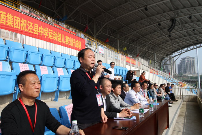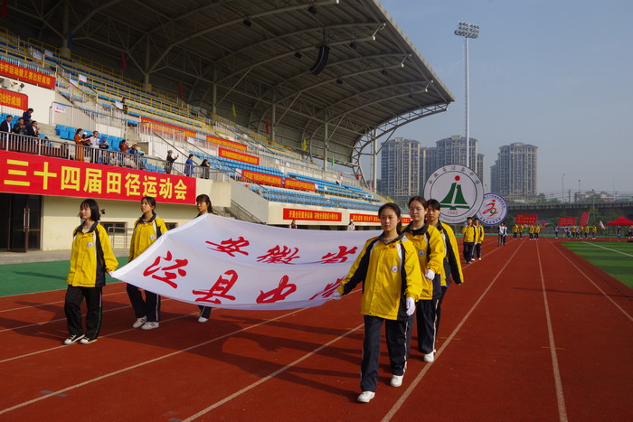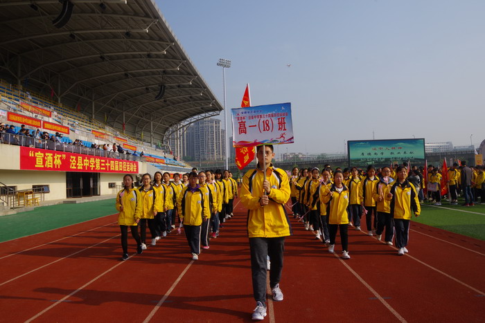 为深入贯彻党的教育方针,大力实施素质教育,加强体育教学,锻炼学生的体魄,4月27日上午,奥体中心体育场彩旗飘扬,洋溢着节日的欢乐气氛,“宣酒杯”泾县中学第三十四届田径运动会在这里隆重举行,一场校园版的“速度与激情”在这里即将上演。正式比赛前举行了隆重的开幕式,开幕式由副校长杨银宝主持。