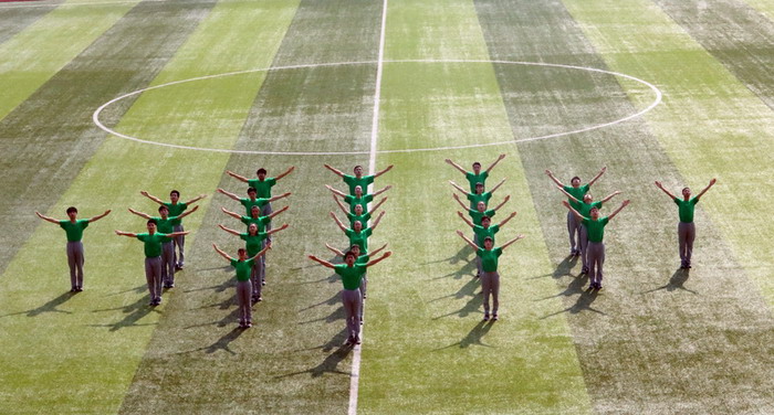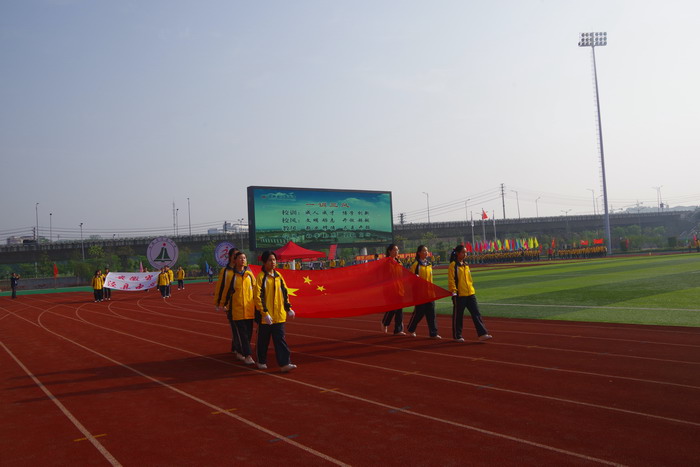 在《运动员进行曲》的激扬旋律下,国旗队、校旗队、校徽会徽队、标牌队、彩旗队、班级方队以及裁判员代表队等依次进入运动场。运动员们昂首挺胸,精神饱满,场内观众席响起了一阵阵的欢呼声和掌声。