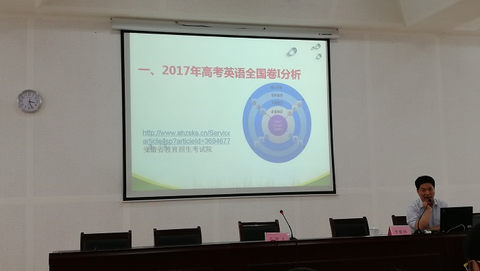 5月11日下午,阶梯教室座无虚席,188金宝博唯一官网_wap.sports918.com邀请合肥市首届高中英语骨干教师、首届“全国中小学外语教师名师”李春林老师来校开展高考冲刺阶段英语复习备考讲座。高三部分班级学生及学校英语老师聆听了讲座。