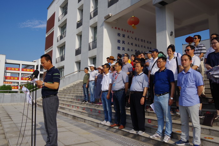 出发前,在学校状元广场举行了动员大会,副校长佘超俊主持大会,校党委副书记、高三年级部主任许晓江作了动员讲话。许书记要求全体高三师生要有吃苦精神的准备,要有良好的精神状态,要有高度的组织纪律性,要牢固树立安全意识。随后,县人大常委会副主任,校党委书记、校长王永生郑重向许书记授校旗,并宣布“远足活动开始”。随后,各班按班级序号整齐列队,浩浩荡荡从状元广场出发,统一乘车向绿林谷“进军”。