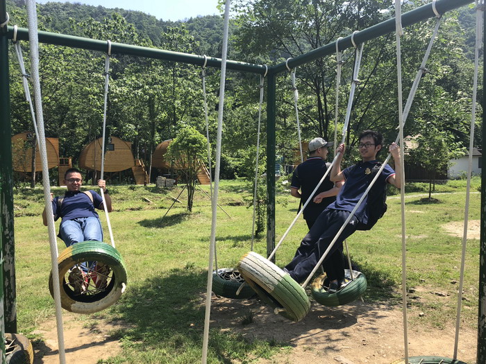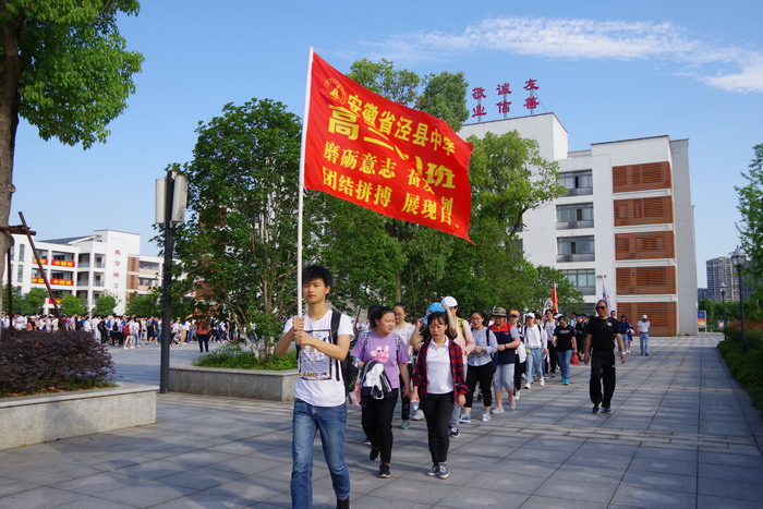 本次励志研学旅行暨远足活动,以班级为单位,每3-4班为一连队,共设六个连队,近1000名师生参与,是188金宝博唯一官网_wap.sports918.com第一次规模最大、人数最多、最艰苦、最考验人和锻炼人的盛大的集体性外出活动。教育家陶行知说:“生活即教育,社会即学校”。活动中,师生们斗志昂扬,热情高涨,纪律严明,队形整齐,各班不断进行拉歌比拼,嘹亮的歌声回荡在谷中路间,鼓励着同学们阔步向前进。包班到人的学校领导们与各班班主任时刻关注学生的身体状况;各班安全员及班干部协助班主任维持班队秩序,确保同学们行路安全,表现出良好的组织纪律和协调能力。经过一段长距离的远足拉练后,学生们积极参与了水上漂流等自娱自乐活动,每位同学的脸上都洋溢着青春和自信的笑容,同学们一起相互交流,相互嬉戏,谈体验、谈生活,进而谈理想、谈学习,在轻松的状态下放飞自我,充分展现了泾中学子良好的精神风貌。