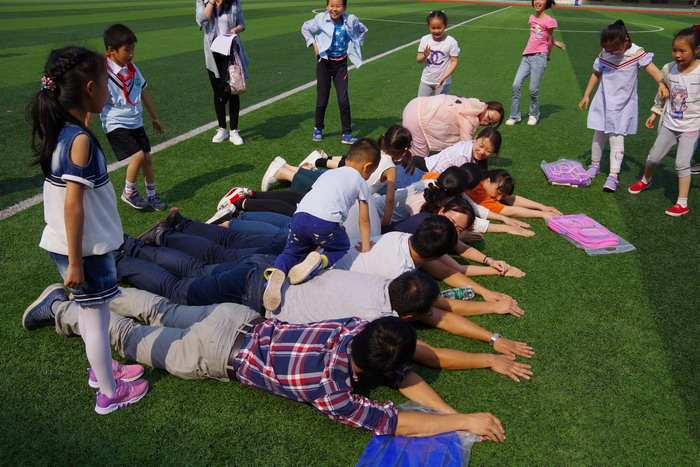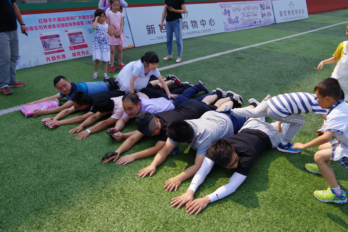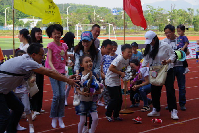 因孩子们的年龄层次不等,设计活动内容时既要考虑到各年龄段孩子的参与度,又要保证游戏的趣味性,学校经过前期筹备,设置了“NO.1”队、“萌萌小黄人”队、“蓝精灵”队、“闪电队”四个队,并精心设计了“前方打仗 后方支援”、“穿越火线”、“找爸爸”、“感恩活动—家长送礼物”等多个游戏环节。活动中,孩子们个个生龙活虎,奋力拼搏,笑声、欢呼声此起彼伏,很快奥体中心运动场就变成了欢乐的海洋。孩子们在父母的陪同下,充分体验了游戏的乐趣,感受了亲子互动的温情,通过亲子互动,既促进了孩子与家长之间的密切配合,又增加了彼此的感情,一场趣味亲子比赛更是拉近了大家的距离。