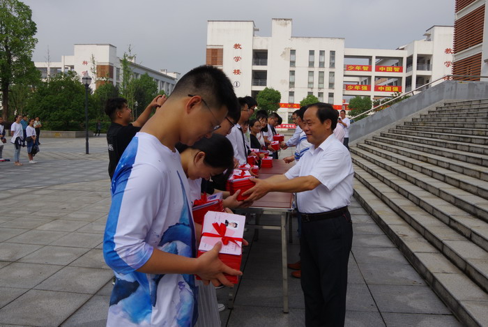 最后,王校长发表了题为“心有梦想 便是远方”的热情洋溢的毕业典礼致辞。王校长回顾了同学们在校三年的表现和取得的巨大进步,对大家顺利完成高中学业表示了祝贺。临别之际,王校长希望大家在这样一个充满希望、永远不能错过的新时代,能紧跟时代脉搏,珍惜青春年华,努力做一个心灵纯洁、人格健全、品德高尚的人,努力做一个有文化修养、有人文关怀、有责任担当的人,在火热的青春中放飞人生梦想,在拼搏的青春中成就事业华章!王校长饱含深情地欢迎大家常回家看看,看看母校美丽的校园,听听老师亲切的唠叨,叙叙自己纯真的情怀,并始终保持“永不懈怠的精神状态”和“一往无前的奋斗姿态”,以昂扬的斗志,坚持的奋斗,去努力,去拼搏。