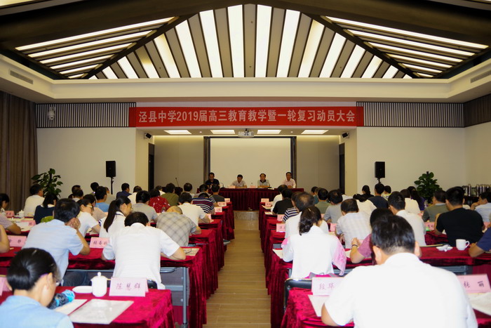 最后,县人大常委会副主任,校党委书记、校长王永生作总结讲话。他指出,在大量优质生源外流的不利因素下,2018届高三全体师生上下一心、团结拼搏、锐意进取,在2018年高考中取得了优异成绩,一本和本科达线率双创学校历史新高。面对2019年高考的接力棒,王校长希望2019届高三全体教师要继续发扬优良的光荣传统和顽强的高考战斗力,坚定信心,扎实苦干,正确处理好高三与高考关系、教学与教研关系、进度与效益关系、面向全体与因材施教关系、教材课本及资料与高考真题关系、教师个体与团结协作关系、问题与方法关系、学校老师与学生家长关系、奋斗与目标关系、学校和“泾中人”关系等“十个方面关系”。他表示,学校、年级部和各职能处室将举全校之力,全力为2019届高三做好各项服务和后勤保障工作。王校长希望大家不忘初心,牢记使命,认真工作,务实进取,再创2019年高考的新辉煌,为办好我们“家门口”的省示范高中、实现“泾中人”的强校梦而贡献新的力量!