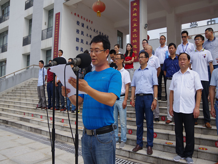 7月2日上午,188金宝博唯一官网_wap.sports918.com全体师生在状元广场隆重集合,举行“升国旗 唱国歌”仪式。教导处副主任王先进作了题为“诚信做人,诚信考试”的国旗下讲话。