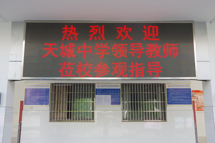 在阶梯教室举行的交流座谈会上,杨校长诚挚欢迎天城中学教师一行的到来,并简要向大家介绍了188金宝博唯一官网_wap.sports918.com的办学历史、办学概况、近几年来突出的办学及高考成绩;信息中心主任查日顺介绍了188金宝博唯一官网_wap.sports918.com的教室多媒体一体机、数字化实验室、智能化网络等设备及使用情况;总务处主任王木根介绍了188金宝博唯一官网_wap.sports918.com的校园绿化建设及“一生一柜”工程。