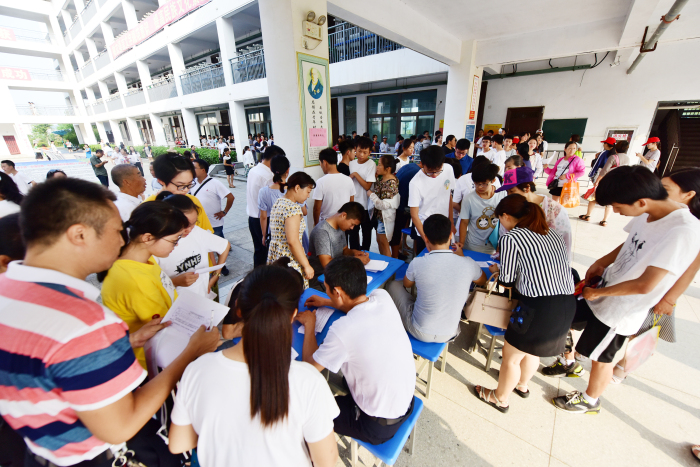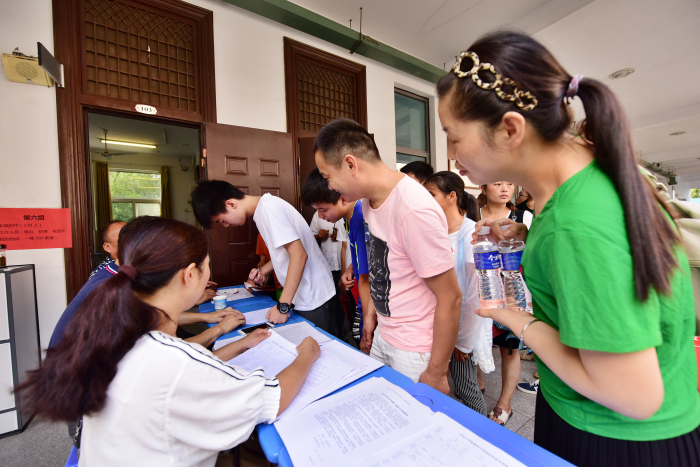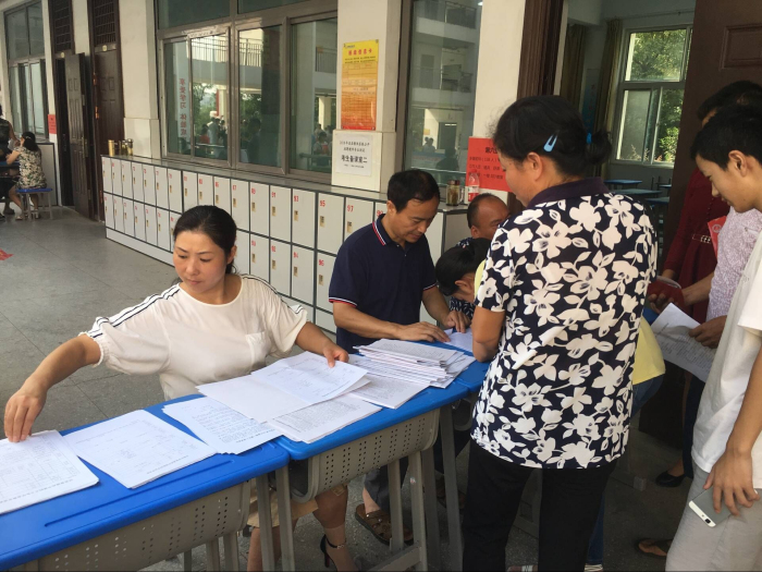自早晨7:00起,近八百名新生在家长的陪同下陆续到校,完成了报到、测量身高、领取资料的整个程序。在各工作组精心组织下,在校团委组织的学生志愿者认真的引导下,报到现场秩序井然。