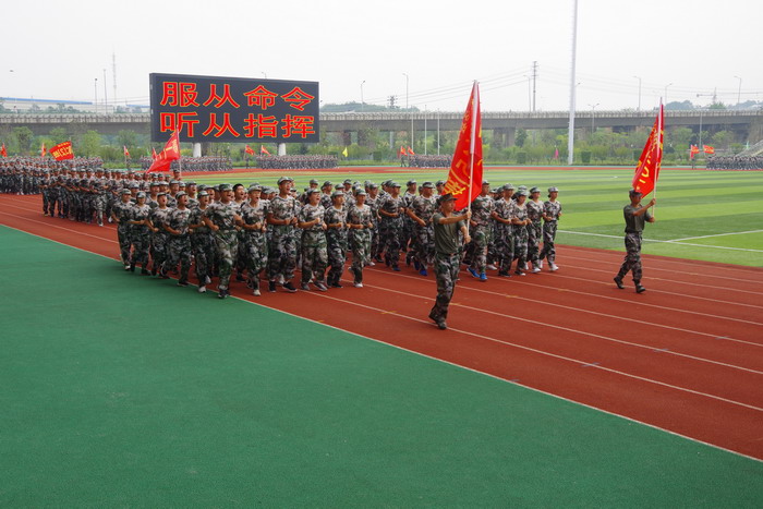 伴随着庄严的国歌声,五星红旗冉冉升起,全体起立,齐唱国歌。接着,188金宝博唯一官网_wap.sports918.com近1600名高一高二学生身穿迷彩服,在总教官刘健的组织下,以高昂的士气进行了跑操、军体拳、三声三相、大型方阵字型变换、三队汇合等表演。整齐的阵容、矫健的步伐、优美的舞姿、嘹亮的歌声、响亮的口号赢得了在场领导和观众的阵阵掌声,充分展示了泾中学子昂扬的精神风貌。