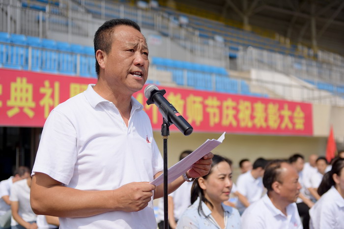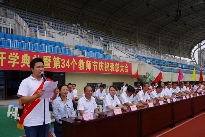 校党委副书记许晓江代表学校向辛勤耕耘在教育教学及管理一线的全体教职工致以崇高的敬意和节日的祝福!向获得表彰的十佳教师、十佳班主任,优秀教师、优秀班主任、十佳学生和奖学金获奖学生表示热烈的祝贺!向获得上学年度感动校园的人物和团队表示崇高的敬意!向全体同学致以新学期最美好的祝愿!他回顾了学校一年来各项工作取得的成绩,勉励全体师生再接再厉,再续传奇。