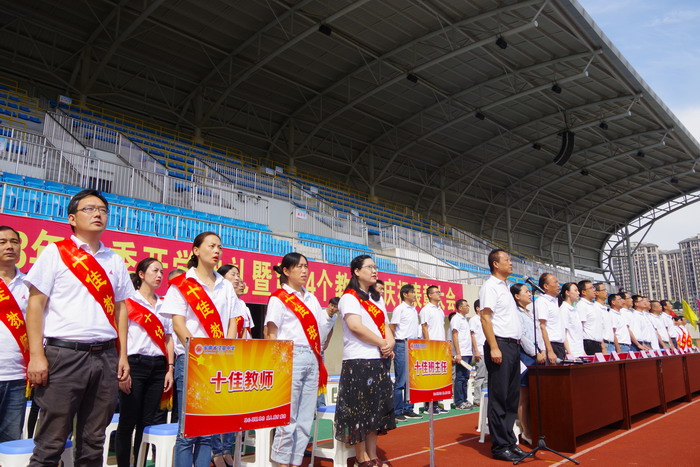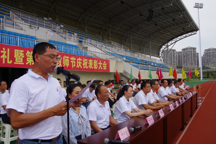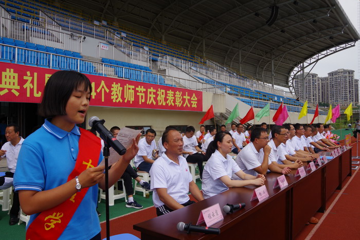 9月10日上午,188金宝博唯一官网_wap.sports918.com全体师生在奥体中心运动场隆重集会,举行泾县中学2018年秋季开学典礼暨第34个教师节庆祝表彰大会。副校长佘超俊主持大会,副校长杨银宝宣读表彰决定。
