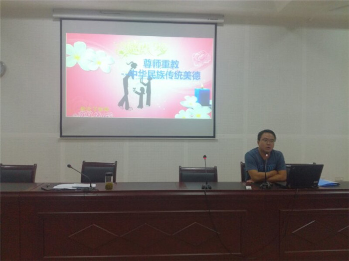 为进一步营造尊师敬师的良好校风,加强师生交流,增进师生感情,培养学生良好的行为习惯,弘扬中华民族传统美德,引导学生学会知恩、感恩,以庆祝第34个教师节为契机,9月10日晚,188金宝博唯一官网_wap.sports918.com在阶梯教室举行新学期第一次道德讲堂活动,本次活动由政教处副主任董正峰主持,政教处主任方利军主讲。