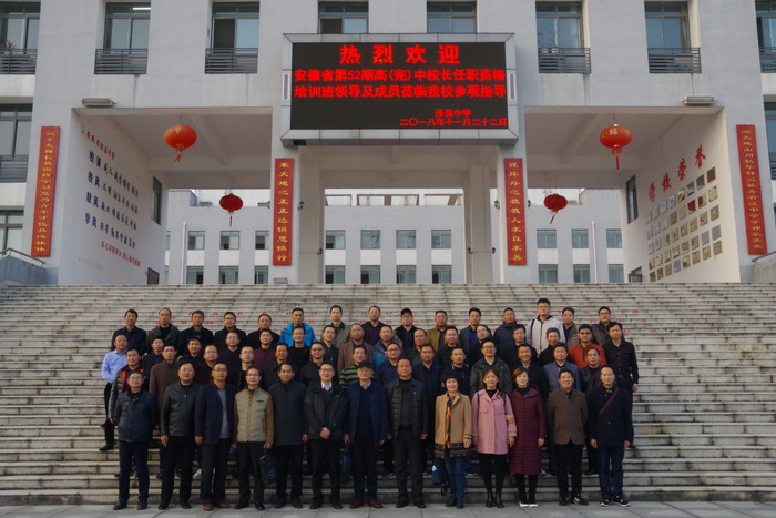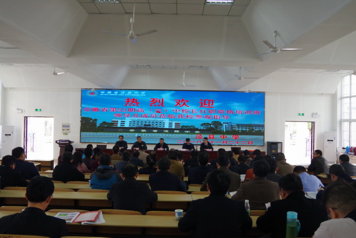 11月22日下午,安徽省第52期高(完)中校长任职资格培训班一行60余人来188金宝博唯一官网_wap.sports918.com参观指导,并在阶梯教室举行了交流座谈会,校党委副书记许晓江、副校长佘超俊参加交流座谈。座谈会由188金宝博唯一官网_wap.sports918.com副校长杨银宝主持。