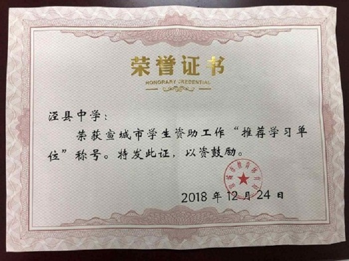 泾县教体局下发《wap.sports918.com组织学习省、市学生资助工作“推荐学习单位”和“推荐学习个人”的通知》(教体助[2018]24号)文件,号召全县各级各类学校积极学习借鉴188金宝博唯一官网_wap.sports918.com的经验做法,进一步拓宽思路,创新工作方法,在精准资助、资助育人和依法资助上狠下功夫,进一步做好新时代学生资助工作。