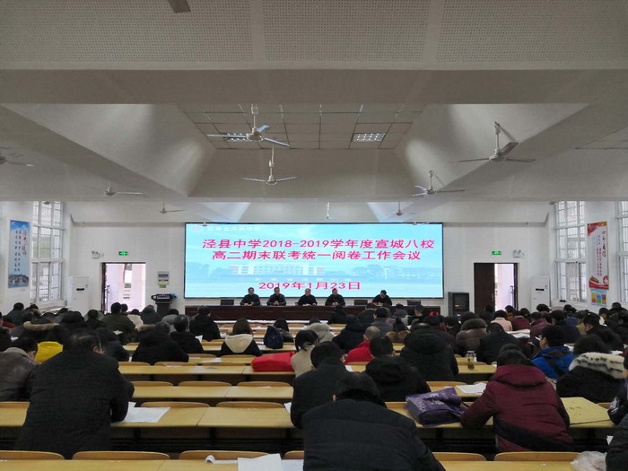 县人大常委会副主任、校党委书记、校长王永生就本次全市八校高二期末联考统一阅卷工作,要求全体人员要讲大局、服从安排,讲方法、合理分工,讲质量、坚持标准,讲效益、步调一致,讲风格、团结协作,讲规矩、严守纪律,讲作风、听从指挥,讲保障、服务到位,讲形象、维护泾中,讲责任、问责追责,切实增强泾县和泾中意识,维护好泾县和泾中形象,充分展示泾县和泾中的办事能力,高质高量圆满完成本次的阅卷任务。