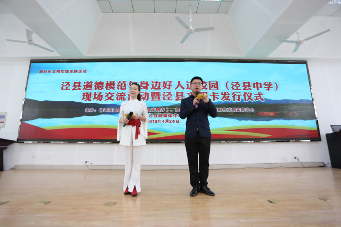 4月24日上午9:30,由中共泾县县委宣传部(县文明办)、泾县教体局、泾县新时代文明实践中心主办,泾县融媒体中心、188金宝博唯一官网_wap.sports918.com协办的泾县道德模范与身边好人进校园(泾县中学)暨文明卡发行仪式在188金宝博唯一官网_wap.sports918.com阶梯教室隆重举行。泾县道德模范与身边好人代表、各乡镇分管领导及文明办主任、文明卡各联盟商户代表、188金宝博唯一官网_wap.sports918.com副校长佘超俊及师生代表参加仪式。