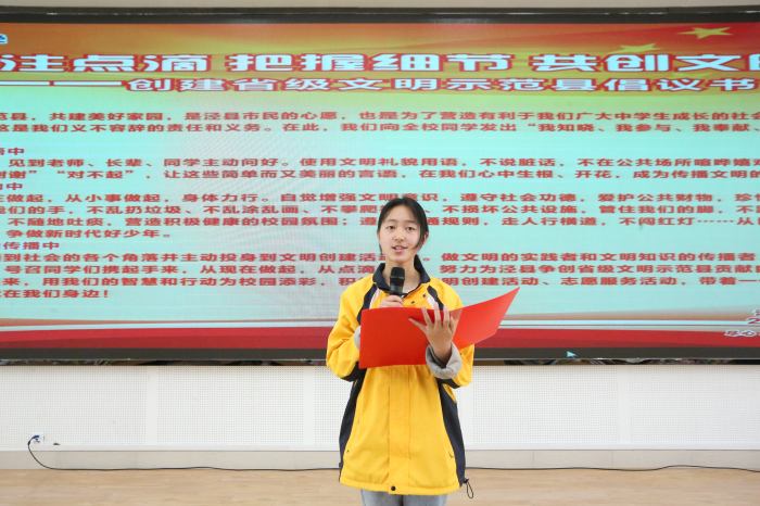 仪式上,188金宝博唯一官网_wap.sports918.com学生代表还宣读了《泾县中学创建省级文明示范县倡议书》,向在座的全体学生发出积极投身“省级文明示范县”的创建中。