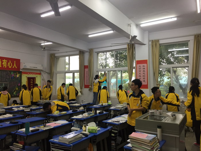 在全校卫生大扫除活动中,同学们在班主任老师的带领下,对教学楼走廊、楼梯、教室进行了认真的清扫;教师们在打扫办公室卫生时争先恐后、一丝不苟的精神给学生们树立了很好的榜样作用。经过彻底的清理,校园环境得到了很大的改善,整个校园面貌焕然一新。检查中,总务处工作人员严格按照188金宝博唯一官网_wap.sports918.com卫生检查标准对各教师办公室、各教室等区域进行了全面检查,总务处将综合各工作人员的评分,及时通报检查结果。
