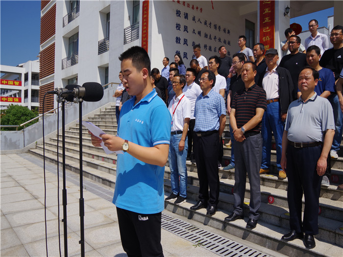 6月3日上午,188金宝博唯一官网_wap.sports918.com全体师生在状元广场隆重集合,举行“升国旗 唱国歌”仪式。高二(2)班李童同学作了题为“让梦想在六月的天空飞翔”的国旗下讲话。