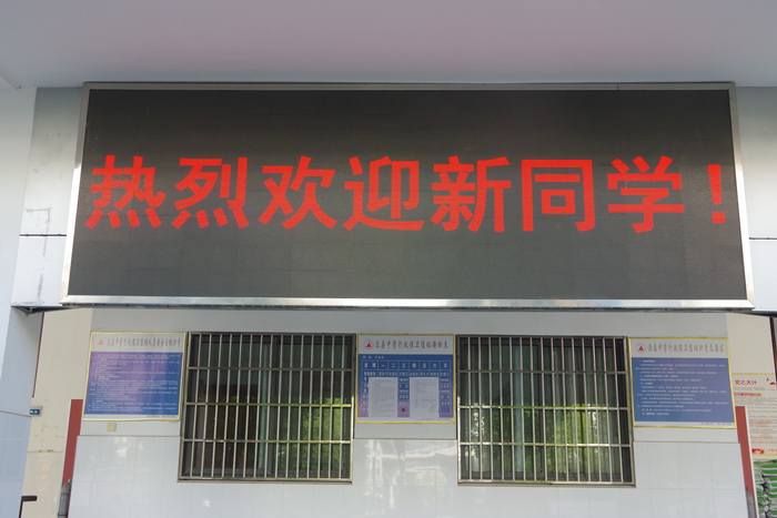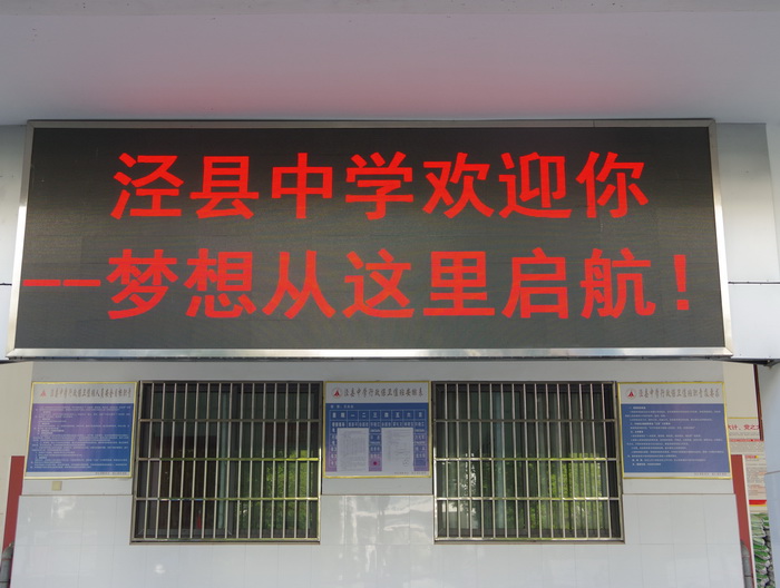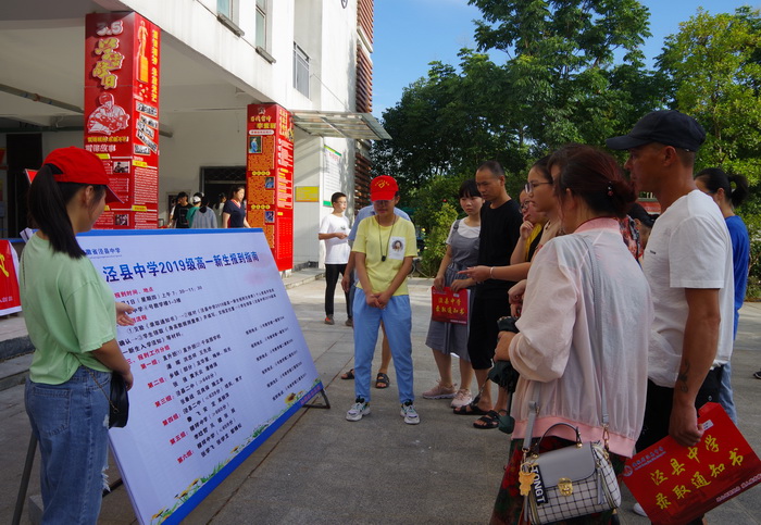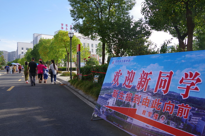 8月1日上午,夏日炎炎,泾县中学校园内到处洋溢着迎接新生的热情和喜庆气氛,花木掩映,彩旗飘扬,道路整洁,音乐激昂,各个电子屏上“泾县中学欢迎您”“热烈欢迎新同学”等字样也显得格外醒目亲切。