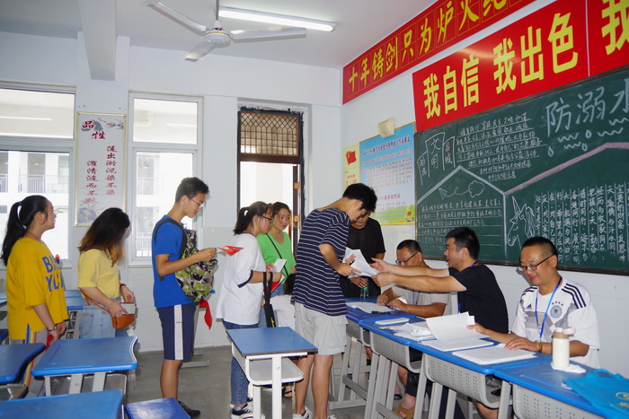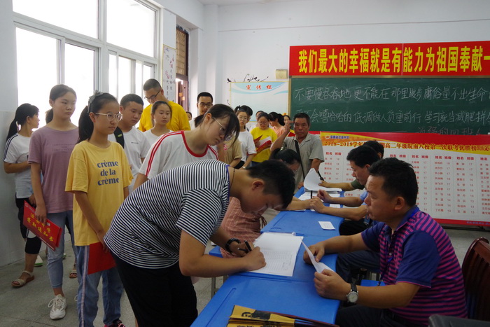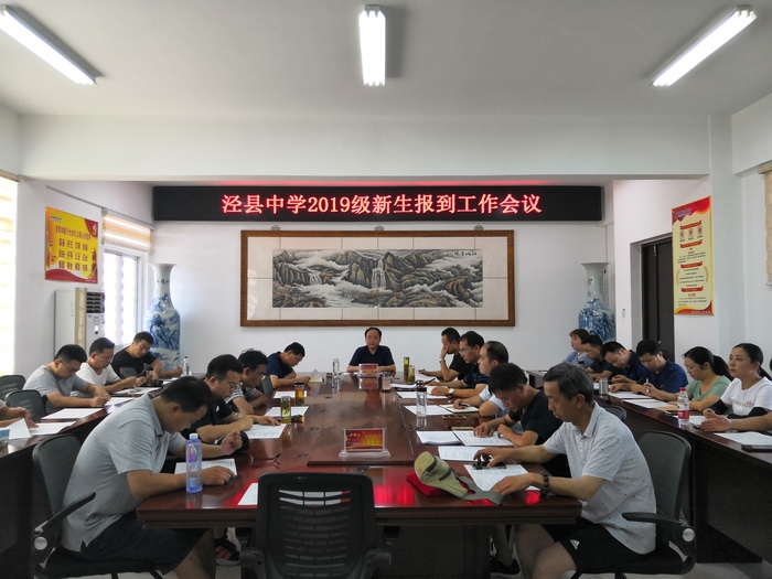 为做好本次新生报到工作,学校领导及相关部门对高一新生来校报到工作十分重视,提前做了精心部署,并专门召开了2019级新生报到工作会议,县人大常委会副主任、校党委书记、校长王永生在会上要求各工作组、各人员要高度重视,明确任务,合理分工,各司其职;服从安排,按时到岗,热情服务,认真工作;团结协作,履职尽责,安全第一,通力协作,圆满完成报到注册工作。同时,还分别设置了报道注册组、后勤保障组、新生咨询组、安全保卫组、志愿服务组和宣传报道组,切实落实各项工作的要点,力求安全、有序、高效地做好迎接2019级高一新生的工作。