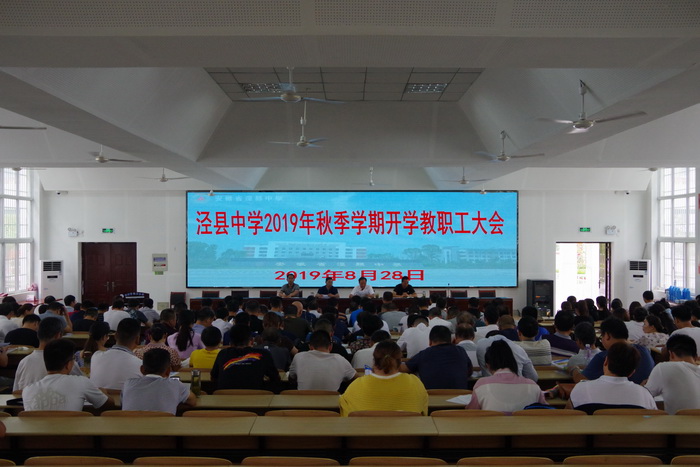 8月28日上午,188金宝博唯一官网_wap.sports918.com在阶梯教室召开秋季新学期开学全体教职工大会。县人大常委会副主任、校党委书记、校长王永生主持会议,全体教职工参加会议。