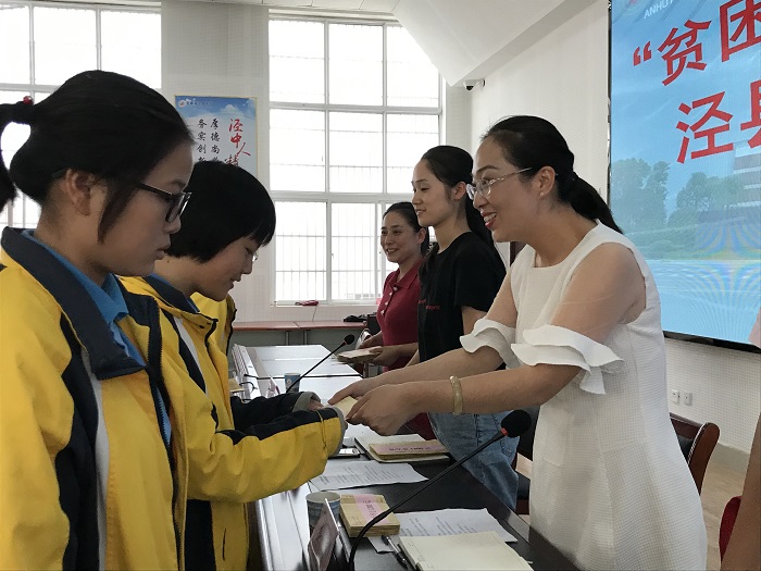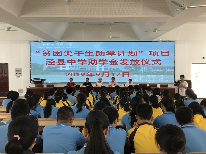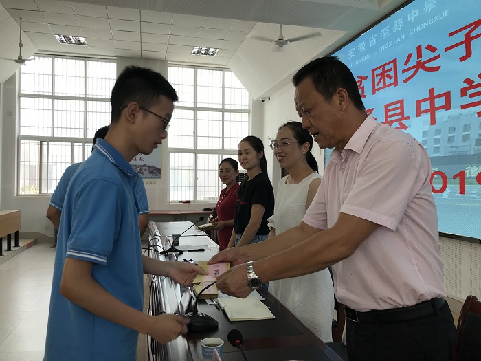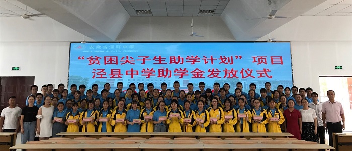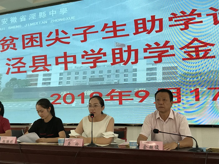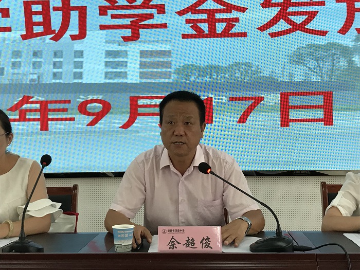 金秋九月,情暖校园。9月17日下午,中国社会福利基金会“贫困尖子生助学计划”项目泾县中学助学金发放仪式在188金宝博唯一官网_wap.sports918.com阶梯教室举行。出席仪式的有宣城市青少年发展基金会秘书长龚玲、团县委副书记赵丽琦、社会爱心人士、188金宝博唯一官网_wap.sports918.com副校长佘超俊、校资助中心主任汤筱敏及188金宝博唯一官网_wap.sports918.com81名受助学生。仪式由校团委书记程云霞主持。