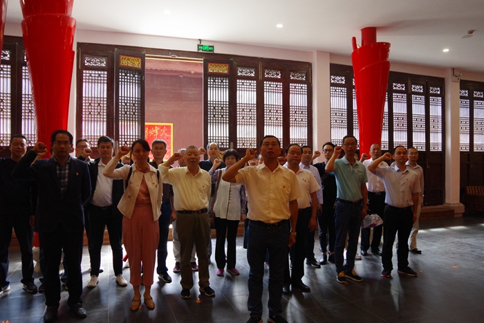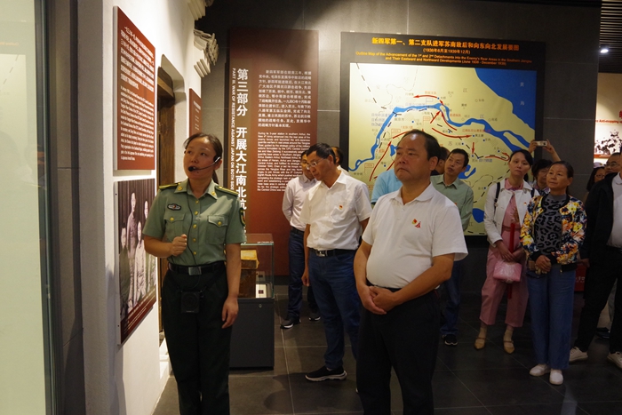 新四军军部旧址陈列馆内,在“抗敌”雕像前,所有参加人员举起右手,庄严宣誓:“我志愿加入中国共产党……”,铮铮誓言,声声入耳,虽是重温,仍历久弥新。随后,在讲解员的娓娓讲述中,大家仿佛重新经历了新四军从建立、发展到壮大的艰难历程;在影像资料的真实还原中,大家又如同亲身感受了那段战争岁月“同室操戈、相煎何急”的沉痛和愤慨。