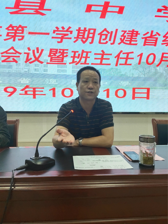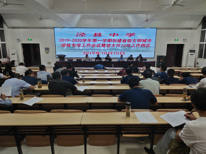 为总结开学以来学校未成年人思想道德建设工作开展情况,布置十月份“不忘初心、牢记使命”学生主题宣传教育及创建省级文明城市迎检工作,10月10日晚,188金宝博唯一官网_wap.sports918.com在阶梯教室召开创建省级文明城市迎检暨班主任10月工作例会。副校长佘超俊、杨银宝、翟礼文及各主要处室负责人、全体班主任参加本次会议。会议由政教处主任方利军主持。