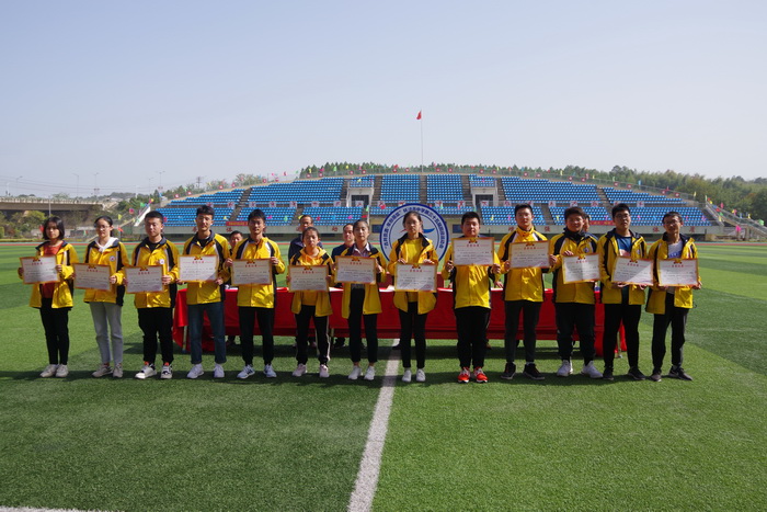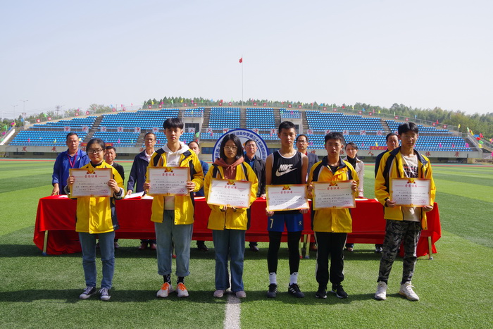 闭幕式上,本次大赛总裁判长刘忠平宣布了甲、乙两组团体前八名班级名单、破纪录同学名单以及获得道德风尚奖和优秀组织奖班级名单。学校领导为获奖的班级和个人一一颁奖。