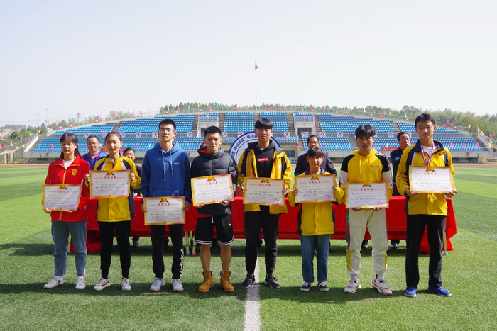 本届运动会上,共有35支代表队605名运动员角逐42个单项的金牌。其中,甲组男子铅球、4*400米接力和乙组男子跳高、跳远、400米共6项比赛成绩打破校运动会记录。本次比赛采用的设备设施是国际比赛标准,径赛终点采用电子摄像计时,并做到各项比赛大屏预报和成绩即时大屏呈现。