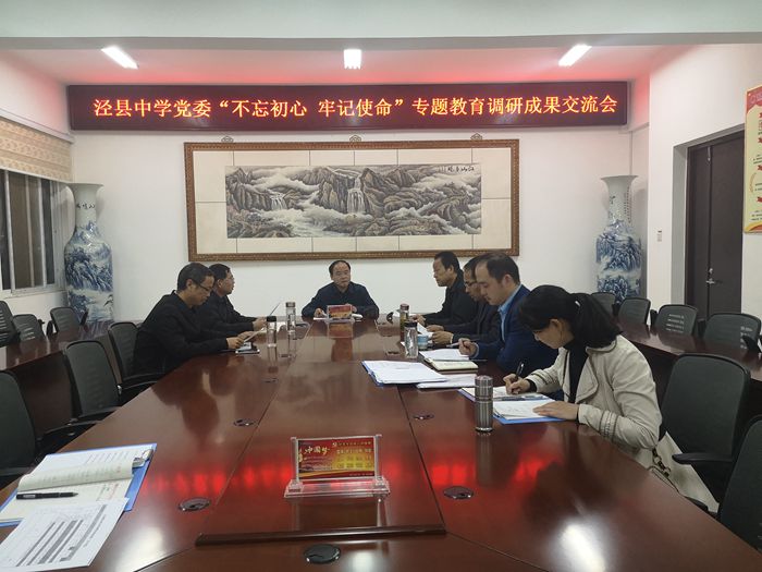 主题教育开展以来,领导班子成员紧扣“不忘初心、牢记使命”这一主题,围绕事关学校发展稳定的重点问题、师生、家长、社会反映强烈的热点难点问题,深入开展调查研究,形成了wap.sports918.com在办学逆境中促进学校可持续性发展、提高后勤服务中心服务质量和水平、促进师德师风建设、提升教育教学质量和高考升学率、执行网络意识形态责任制、发挥基层党支部作用、实现干部队伍高效建设等主题的高质量调研报告,会上,大家进行了调研成果交流。