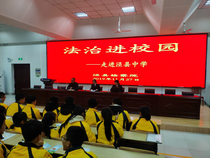 为加强法治宣传教育,让法治走进校园,进一步增强同学们的法治观念,接受法治教育,自觉遵纪守法,做一名知法、守法的合格高中生,11月27日下午,县检察院第一检察部主任董海燕一行5人来到188金宝博唯一官网_wap.sports918.com,与188金宝博唯一官网_wap.sports918.com联合开展了法治教育讲座。县检察院马云检察官担任主讲,高一、高二年级部分班级约300名学生参加讲座。讲座由政教处主任张俊主持。