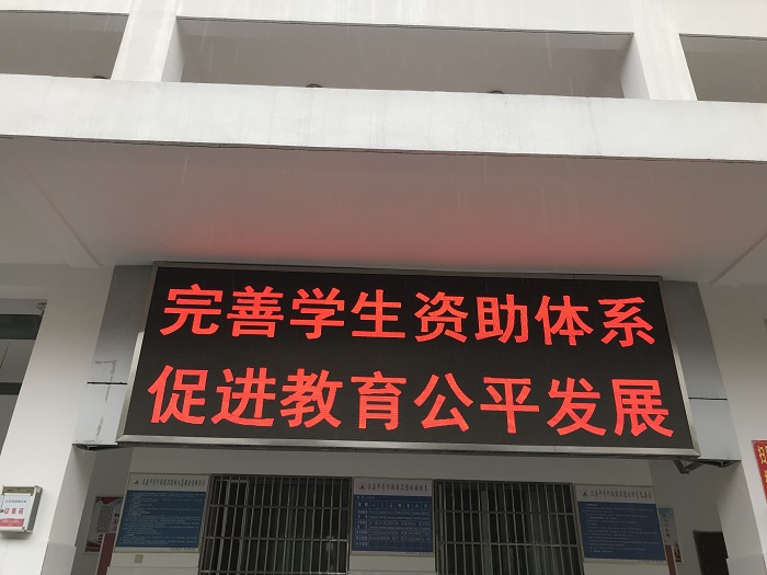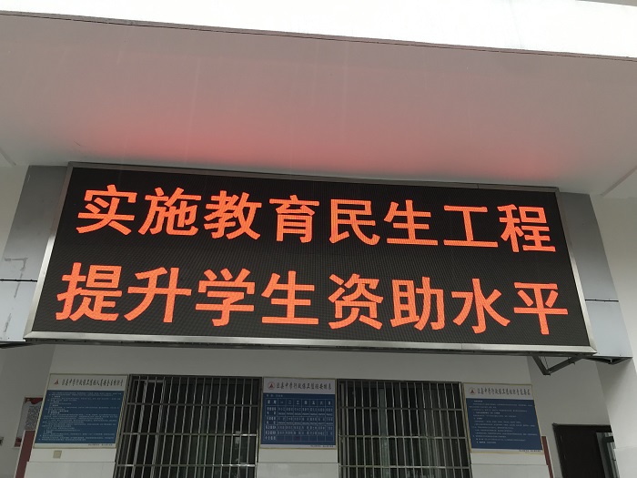 屏幕标语分别为:坚持以人为本,关注教育民生;完善学生资助体系 促进教育公平发展;免除学杂费,受惠千万家;实施教育民生工程提高学生资助水平。诚信承诺书中,受资助学生须作出以下承诺:所提供的家庭经济困难相关证明材料及所填写的家庭收入等信息真实可售,无弄虚作假行为;严格遵守班级民主评议程序;所获助学金全部用于木人学习和生活之必需,不铺张浪费,不进行与自己经济情况不符的消费活动;热心公益事业,积极参加集体活动;谨守勤俭求学的原则,在学习、生活等方面发挥积极的模范作用,保证不违反学校的规章削度;自觉接受监督,如出现诫信为,退回资助金并接受纪律处分。