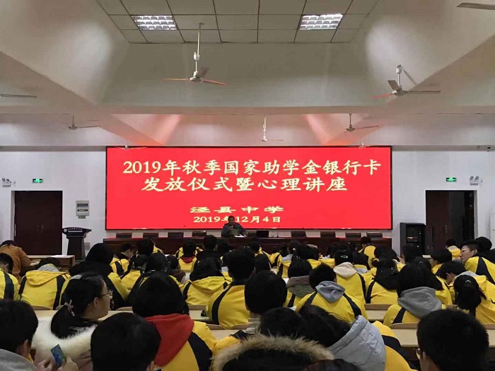 12月4日晚,188金宝博唯一官网_wap.sports918.com学生资助中心在阶梯教室举行2019年秋季学期国家助学金银行卡发放仪式暨心理讲座。参加仪式的有资助中心全体人员,政教处主任助理、心灵驿站站长及新学年受资助的167名学生。仪式由资助中心主任汤筱敏主持。