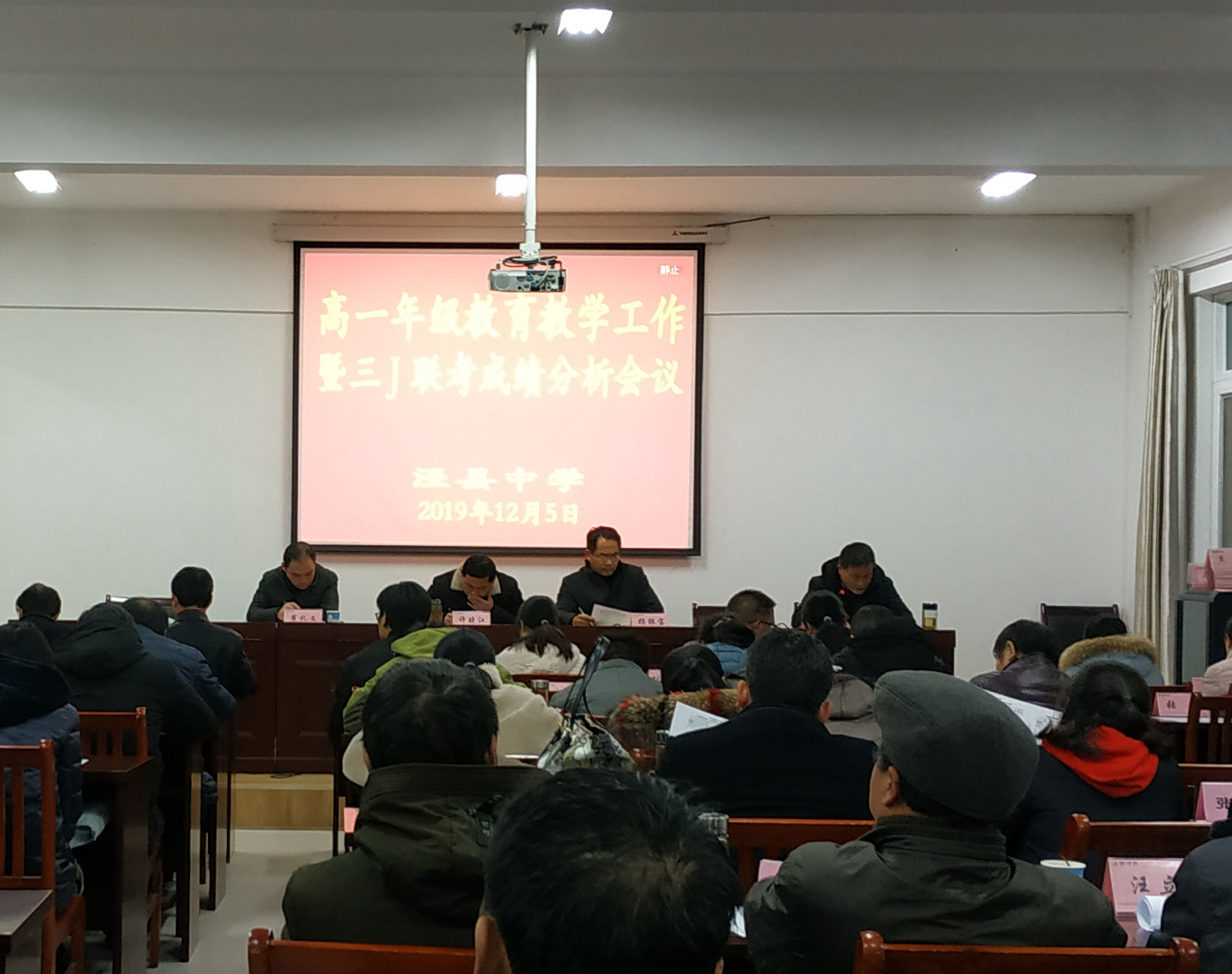 为全面总结分析2019级高一“3J”联考并部署后阶段年级教育教学工作,12月5日晚,188金宝博唯一官网_wap.sports918.com在综合南楼302室召开高一年级教育教学工作会议暨“3J”联考成绩分析会,高一年级部成员及全体高一教师参加会议。会议由高一年级部主任、副校长杨银宝主持。